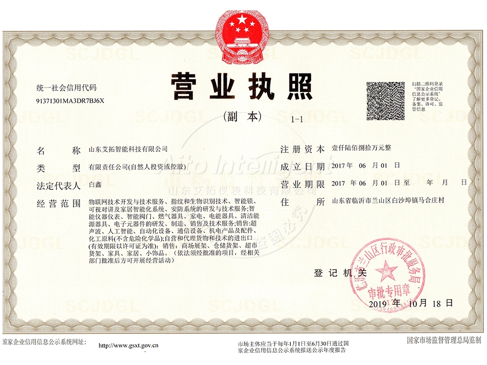 山東艾拓智能科技有限公司是以設(shè)計(jì)、研發(fā)、生產(chǎn)、銷(xiāo)售、服務(wù)為一體的綜合性新型企業(yè),我們一直致力于生產(chǎn)智能水表、智能電表、智能燃?xì)獗?、超聲波熱量表等四大系?0余款產(chǎn)品,公司注冊(cè)資金1680萬(wàn)元,占地6000余平。